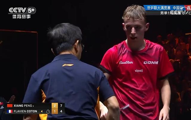 10月2日,WTT中国大满贯男单1/8决赛,国乒选手向鹏3-1(7-11、11-4、14-12、11-6)战胜科顿,晋级八强。下一轮将对阵雨果。