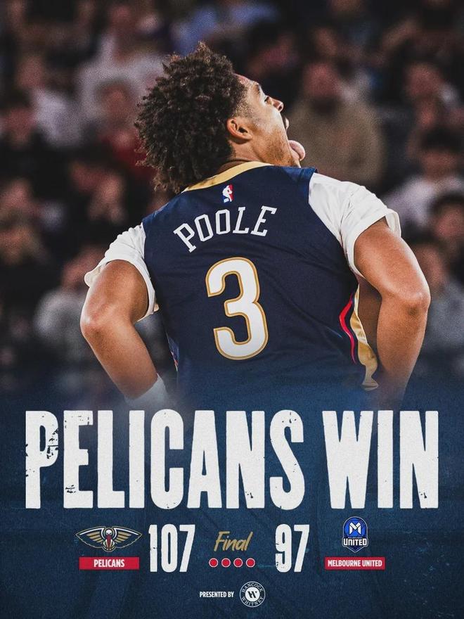 值得一提的是,鹈鹕全队三分33中8,对面的墨尔本联队则是三分41中12。