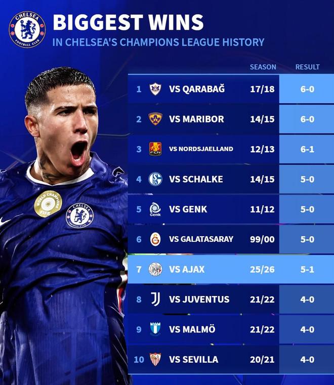 - 英超 | 51战胜阿贾克斯,切尔西赢得队史欧冠单场第7大比分胜利