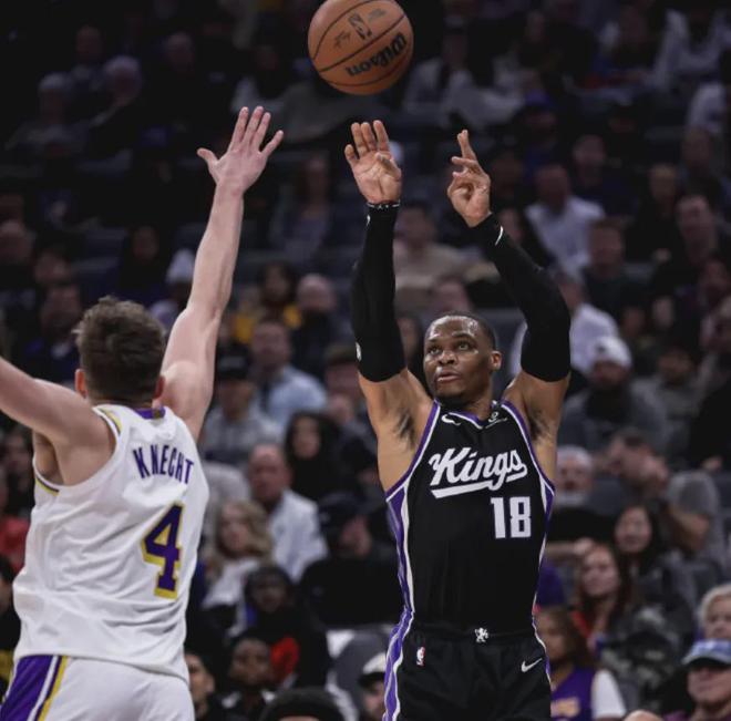 国王在威少爷的带领下一路猛攻,差点就把湖人啃下来了。湖人这场球也是阵容不齐整,詹姆斯继续因为坐骨神经痛而缺席,东契奇都因伤休战,相当于是没有核心球员了。