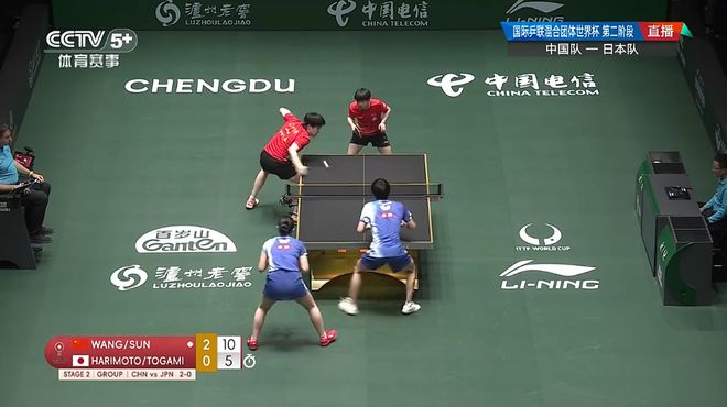 第二场女单比赛,王曼昱2-1战胜伊藤美诚,三局比分为:12-10、10-12、11-2。中国队大比分5-1领先。
