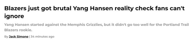 杨瀚森今日迎来生涯首次首发,但比赛也让外界更清晰地意识到,他目前还未具备胜任首发级别的出场时间的能力。波特兰开拓者在客场惨败给缺少莫兰特的孟菲斯灰熊,而杨瀚森甚至没能打满20分钟。此役杨瀚森仅登场19分13秒,球队最终以96-119大败。这位新秀内线全场5投2中,贡献4分5篮板2助攻,同时出现2次失误。尽管克林根伤缺让杨瀚森承担了更多戏份,但这样的表现并未给开拓者带来积极影响。他目前确实没做好成为NBA首发的准备,但这其实无可厚非。
