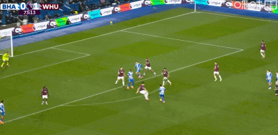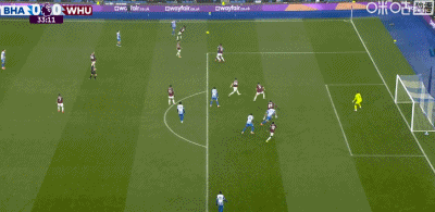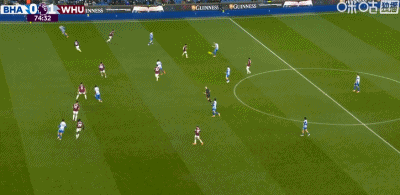 第73分钟,鲍恩倒地情况下小角度破门,西汉姆联1-0布莱顿