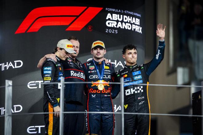 在阿布扎比的2025年F1收官战比想象中要激烈,维斯塔潘用一个冠军证明自己依然是赛道上最优秀的车手之一,但迈凯伦前期的巨大优势以及诺里斯稳定的表现还是将最终的车手总冠军揽入怀中。