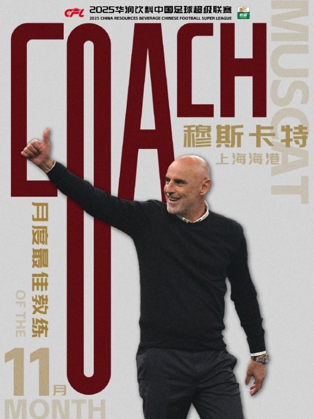 - 中超 | 穆斯卡特当选中超11月最佳教练