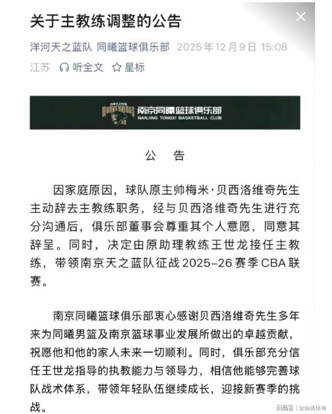 - CBA | 南京官宣换帅引热议!媒体:王世龙加入同曦起贝帅的命运就已注定