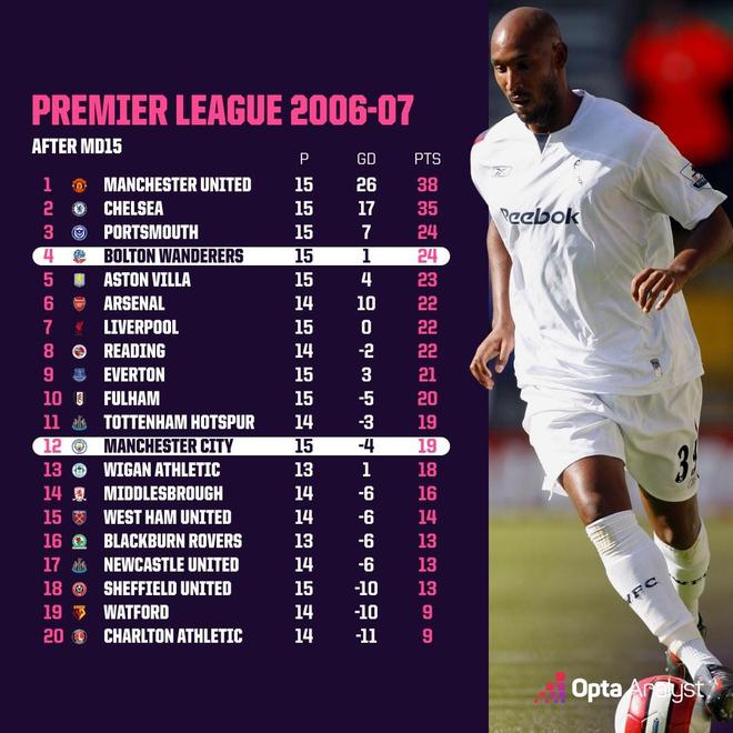 目前水晶宫以26分排名英超积分榜的第4位,在他们之后分别是切尔西(25分)、曼联(25分)、埃弗顿(24分)、布莱顿(23分)、桑德兰(23分)、利物浦(23分)、热刺(22分)以及纽卡(22分),9支球队之间只有4分的差距。根据Opta的统计,英超上一次在前15轮过后排名第4和排名第12的球队之间分差不超过5分发生在2006-07赛季,当时博尔顿以24分排名第4,随后是维拉(23分)、阿森纳(22分)、利物浦(22分)、雷丁(22分)、埃弗顿(21分)、富勒姆(20分)、热刺(19分)以及曼城(19分)。【上咪咕独家看英超】