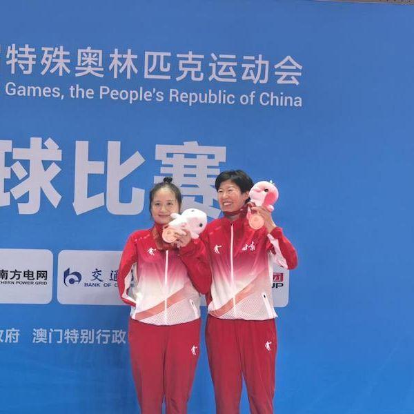12月9日,全国第十二届残疾人运动会暨第九届特殊奥林匹克运动会(下称“残特奥会”)女子双打TT10级铜牌争夺战中,甘肃队的周迪奋与搭档刘旭,经过五局生死鏖战,以3:2险胜广东一团的强劲对手。