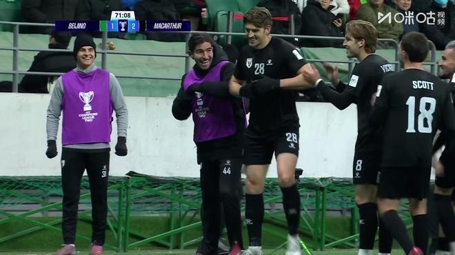 下半场易边再战,原本半场场面占据一定优势的国安却先丢球。第56分钟,麦克阿瑟FC左侧角球开入禁区,国安禁区内防守漏人,波波维奇头球攻门打破僵局,国安0-1落后。