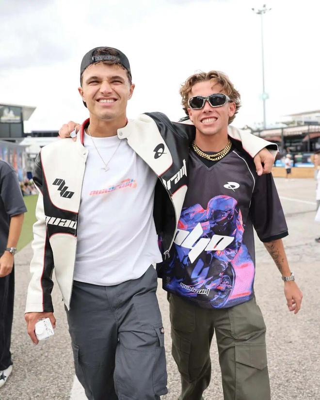 想要更有质感和风格,就和Norris一样,拿T恤搭配赛车款就行。