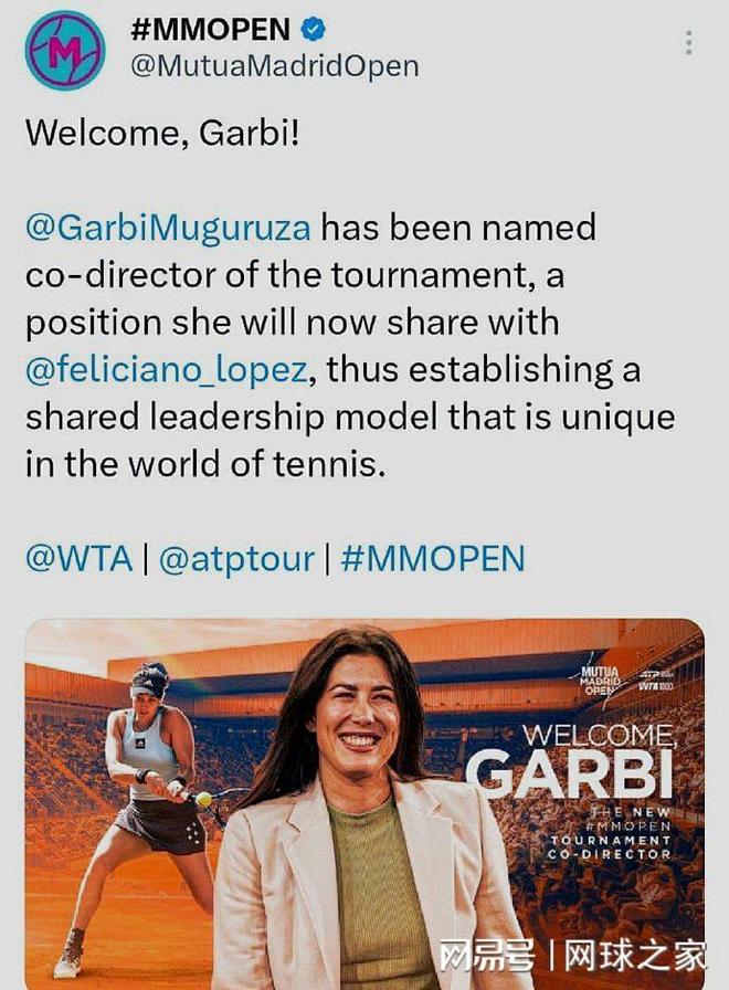 三是前女单世界第一、西班牙名将穆古鲁扎将出任马德里站联合赛事的总监。恭喜蘑菇!